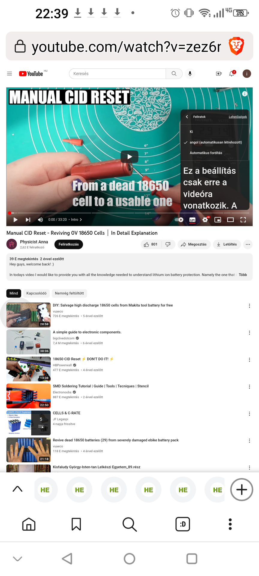 Érdekes, amikor megnyitottam a fizikus lány videoját, mellette ott volt “CID reset Do Not Do It” video, azt is nézzëtek meg. A srác mühelyében ezernyi 18650- ös cella van.