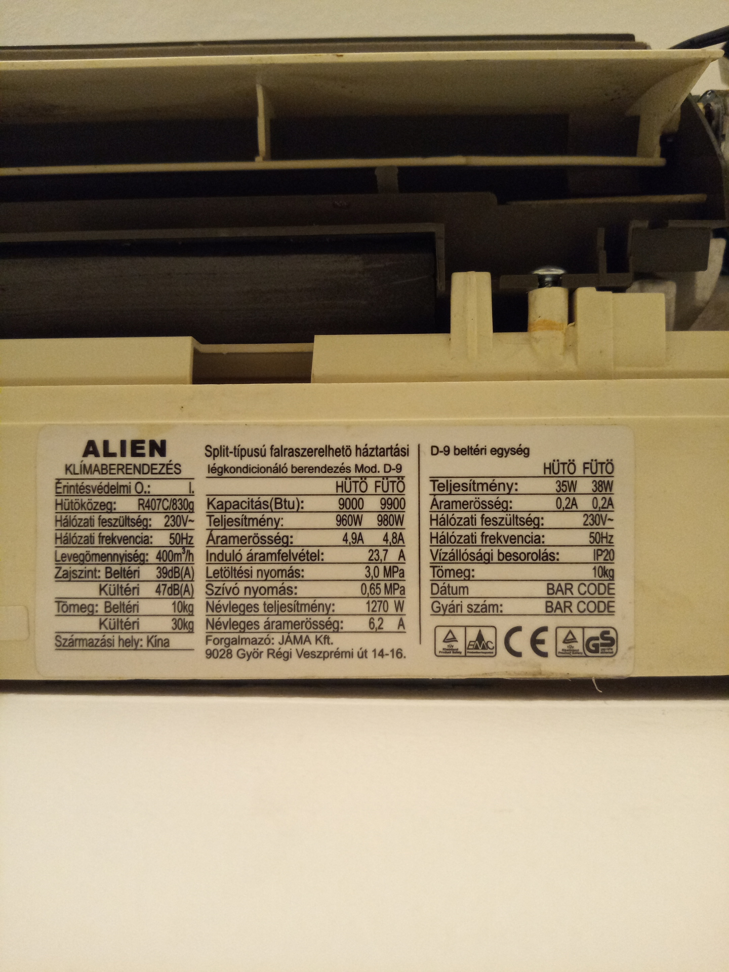 Az ősszel vettem gombokért egy régebbi on-off Alien(galanz) hűtő-fűtő klímát 407c gázzal kfr25-gw kültérivel, hogy elsősorban az átmeneti időszakban fűtsön, nyáron meg a mobilklíma mellett/helyett. A napokban felszereltettem szakemberekkel, már sötét lett mire végeztek. A hűtés rendesen működik, mondjuk nem próbáltam órákon át... Visztont egyenlőre sehogy nem tudtam rávenni, hogy fűtsön is. Próbáltam hűtés után is és úgy is, hogy fűtésre állítva kikapcsoltam órákra és vissza. A beltérin megy a ventilátor, a kültérin nem történik semmi. A bekötés elsőre jónak tűnik, úgy tűnik nem akar valamiért fűtés módba váltani. 4 utú szelep, relé esetleg? Vagy a felszerelés közben nem sikerült valami? Ha van ötlete valakinek szóljon, nem vagyok klímaszerelő de a karbantartás nem idegen számomra.