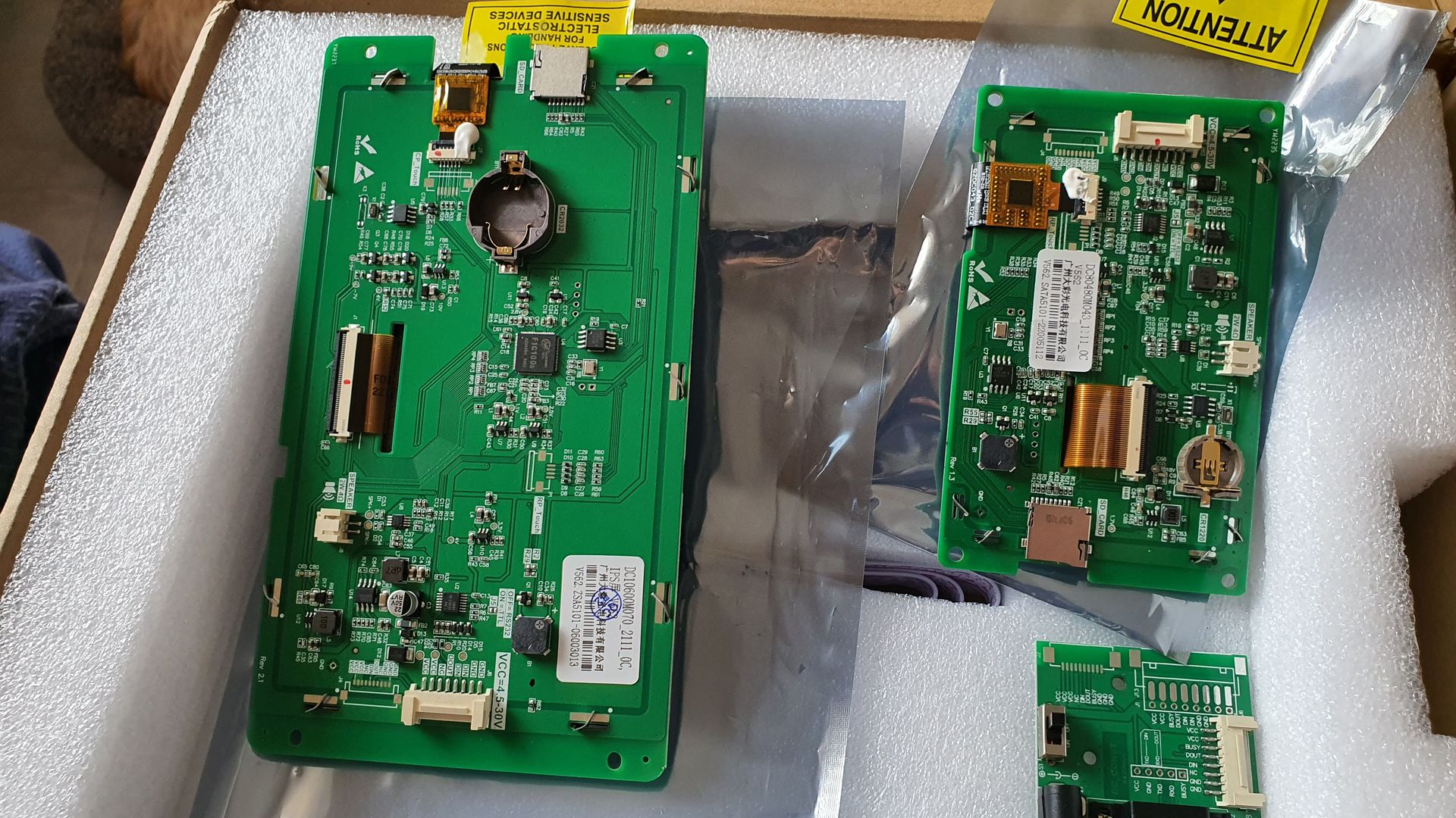 Mejöttek a kijelzőim. Hétvégén ki is szeretném őket próbálni, remélem lesz rá idő. Egyelőre bekapcsoltam, a 4.3-ason volt gyári példa, az működött, a 7-esre tettem gyorsan egy alap fw-t, az is. Eddig jó.