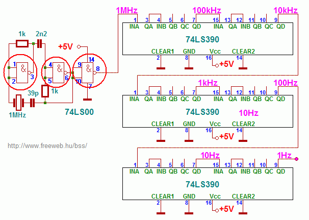 Szia, ez egyetlen darab 74LS00-ás logikai TTL-ic, bárhol lehet kapni,kb 50ft, ha jobban megnézed ott vannak a lábkiosztások. Egyébként amiket bekereteztél az IC-n belül lévő ÉS kapuk. De nincs jelentősége, mert a kvarcon, az ellenállásokon és a kondikon kivül benne van egyetlen IC-ben.