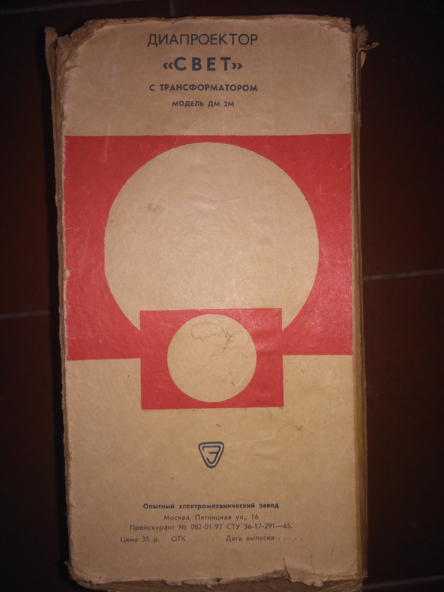 Szovjet diavetítő. Működőképes, de olyan béna a kezelése, hogy arra nem javaslom. A trafója nemtom hány voltos, egy előtét van hozzá.