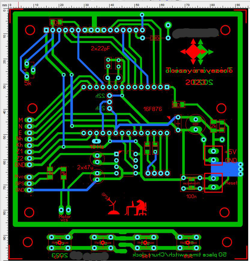 (Most vettem észre egy egyszerűbb GND vezetékelést. Mert egy régi, más tokozású procival működő nyákomról másoltam és a beidegződés...)