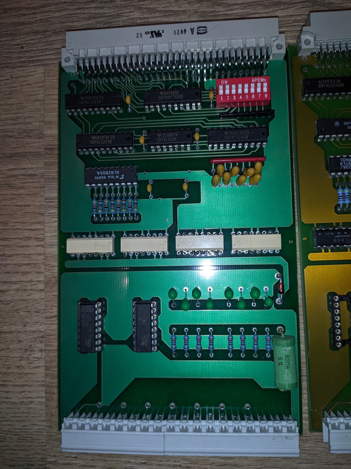 Szeretnék tőletek segítséget kérni a következő nyomtatott áramkörök beazonosításában. Az első 4 képen lévő 4 maratott nyák modul szerintem megegyezik funkcióban. Lefotóztam a hátoldalukat is mert ott vannak a kivezetések beforrasztva. A jobb alsó sarkokban minden nyákon 2db 16bites (0-F) rotary switch található. A második 4 képen 17x10 cm-es interfész panelek (?) vannak, mindkét oldalukon csatlakozóval. Ezekből sok darab van, csak 4-et fotóztam le, vannak köztük sok hasonló. Az egyiknek a csatlakozóján a "siemens pc612" felirat látható. Tele vannak 74LS szériájú ic-kel. Ha a képeken bármelyik komponens felirata nem olvasható, kérdezzetek nyugodtan.