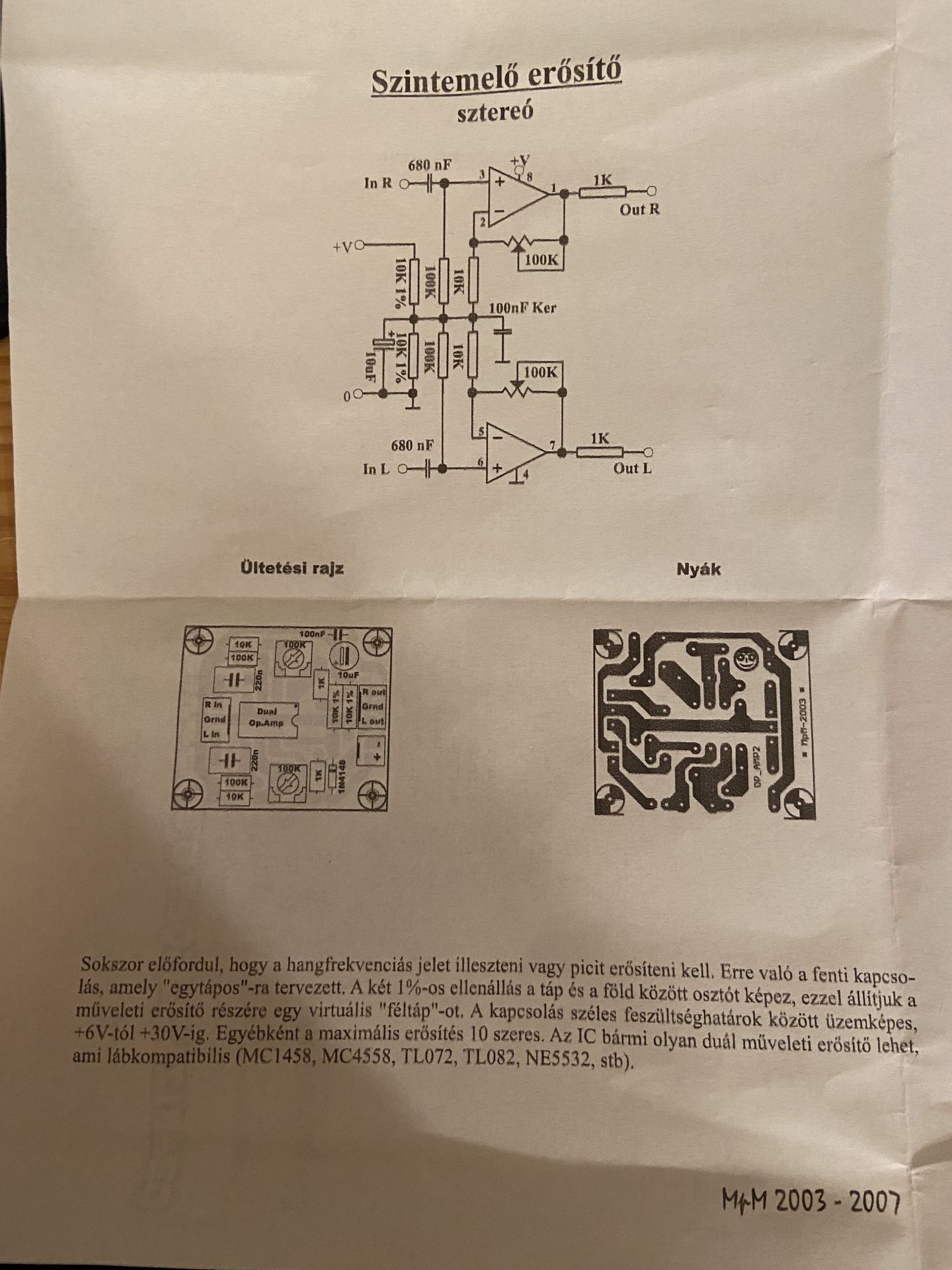 Egytápos az erősítő, viszont nincs kicsatoló kondenzátor. Milyen végfok csatlakozik utána? Lehet, hogy azt elnémítja az 5,7V DC.
