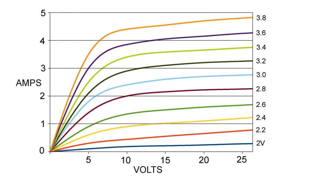 power Jfet vagy Mosfet egy változó feszültségű áramforrás görbekészlettel ami úgy néz ki, mint egy Pentode cső:
