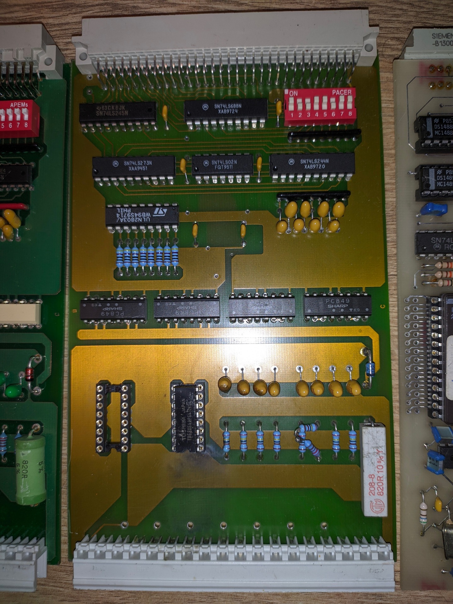 Szeretnék tőletek segítséget kérni a következő nyomtatott áramkörök beazonosításában. Az első 4 képen lévő 4 maratott nyák modul szerintem megegyezik funkcióban. Lefotóztam a hátoldalukat is mert ott vannak a kivezetések beforrasztva. A jobb alsó sarkokban minden nyákon 2db 16bites (0-F) rotary switch található. A második 4 képen 17x10 cm-es interfész panelek (?) vannak, mindkét oldalukon csatlakozóval. Ezekből sok darab van, csak 4-et fotóztam le, vannak köztük sok hasonló. Az egyiknek a csatlakozóján a "siemens pc612" felirat látható. Tele vannak 74LS szériájú ic-kel. Ha a képeken bármelyik komponens felirata nem olvasható, kérdezzetek nyugodtan.