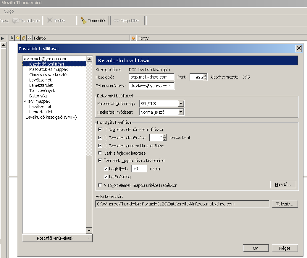 Yahoo mail: Most próbáltam, elméletileg működnie kellene POP3-al, gyakorlatilag nem működik. A levelezőprogram annyit ír ki, hogy a jelszó elküldése sikertelen volt. Azt írják régebbi programhoz külön jelszót kell generálni, kiválasztom ezt a menüpontot, erre kiírja, hogy ez jelenleg nem elérhető... Tehát yahoo nem jött be.