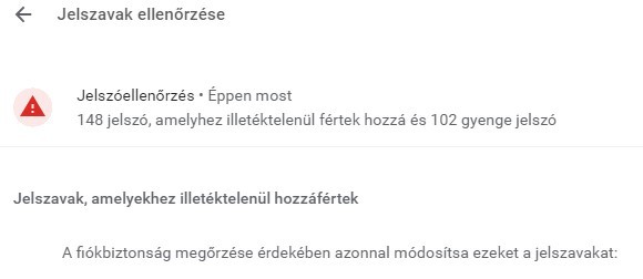 "Nem biztonságosak azon jelszavak és felhasználónevek kombinációi, amelyekhez illetéktelenül fértek hozzá, mivel az interneten közzétették őket." Továbbá ott van egy lista...amelyben ismerős, általunk is látogatott weboldal is szerepelhet. De gyanúm szerint nagyon kevesen néznek be oda, ahol ezt a google leellenőrzi. Furcsálom azt is, hogy ezidáig még a HE tagok közül senki nem írta le, hogy igen, nála is van/volt ilyen "incidens! Továbbá a Google hitelességét nálam azt is erősen csökkenti az, hogy míg az egyik PC-men belépve 145, míg a másikon 122 jelszavamat véli problémásnak. Pedig a "szinkronizálás"be van kapcsolva/frissítve. Meg miután 30-at megváltoztattam, továbbra sem változik ez a szám...1-2-3 nap múltán sem. Ráadásul a "have i been pwned" ellenőrzén OK az emailcímem, semmi problémát nem jelez... A hozzászólás módosítva: Feb 17, 2023