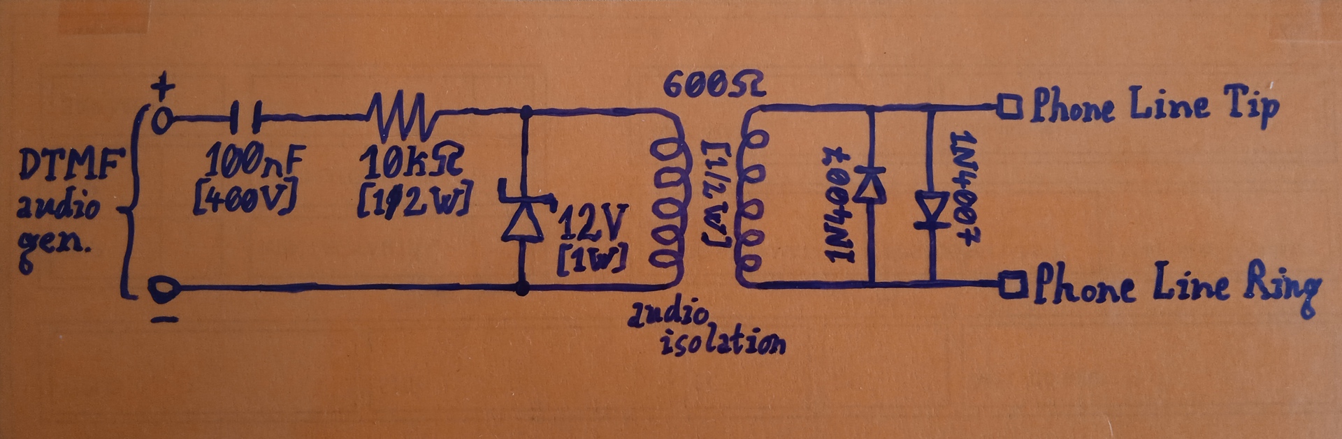 Analóg vezetékes telefonvonalhoz lenne szükségem egy leválasztóra, amivel kimenő, vonalszintű (−10dBV) audiojelet tudnék ráültetni a telefonvonalra. (főképpen DTMF tárcsázáshoz -- de lehet, máshoz is jól jön majd...)