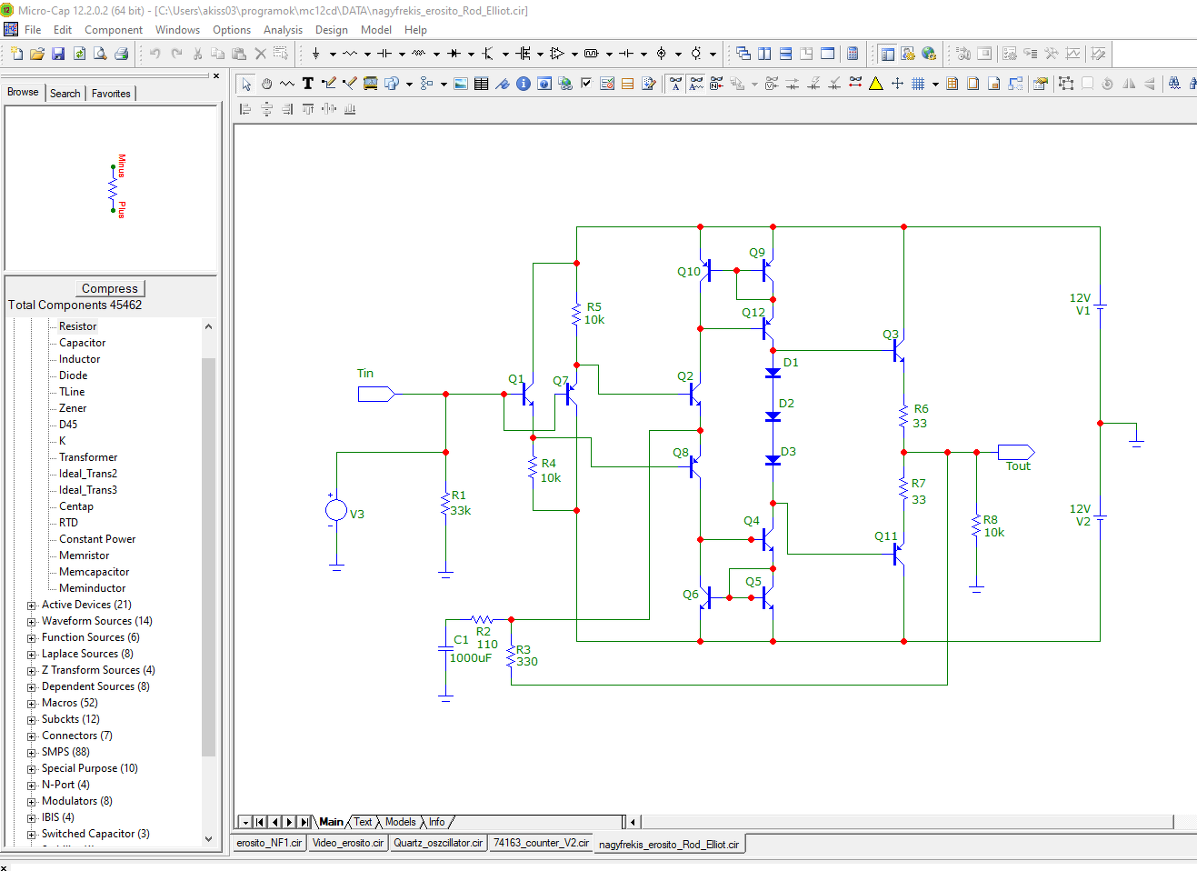 Az LTSpice-ről írtam, hogy valamilyen - számomra rejtélyes és ismeretlen - oknál fogva "látja egymást" a gépemen a két szimulátor. A Circuit Maker addigi sikeres szimulációin sorra hibaüzenetek jelentek meg, rosszabb esetben lefagyott a gépem. Az LT törlése után ez a kellemetlen jelenség megszűnt. Emiatt kicsit félek a Micro-Cap-tól is, de ki fogom próbálni miután a biztonsági mentéseket "megóvintézkedem".