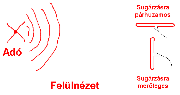 Sugárzási irányra merőlegesen.