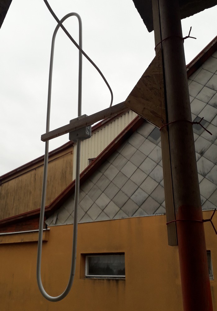 Megtörtént a kihelyezés, ugyan nem falra, hanem póznára sikerült, de így is jó. Mondjuk hilti szalagot vagy bilincset nem találtam itthon, úgyhogy jobb híján maradt a rézdrót rögzítésnek. Egy lakkozást még megejtek rajta, mert így az esőt nemigen fogja bírni. A helyi 8 adót fogja, ebből 6-ot sztereoban, kettőt csak monóban, viszont az a kettő kisebb teljesítményű adók, és a rálátás sem tökéletes mert más tornyon vannak. Viszont az országos adótorony a ház másik oldalán van, így azokat nem fogja már.