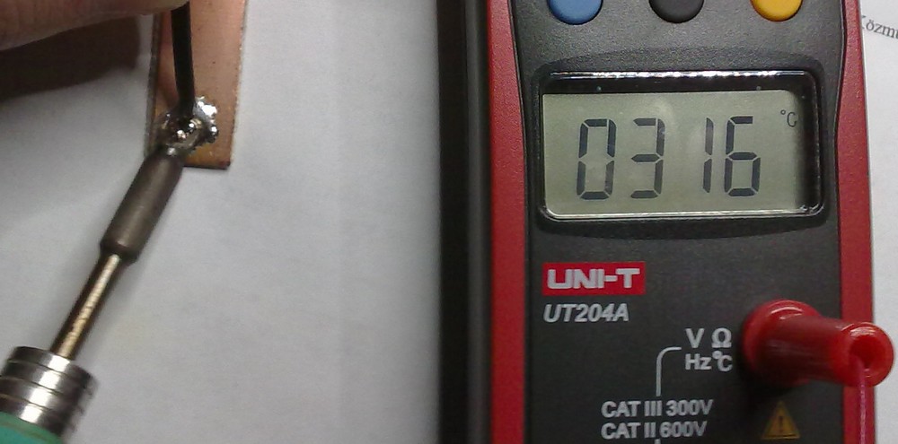 A kép alapján, egy rövid tömör, viszonylag vastag hegyet mértél, egy lomha hőmérővel, ami minimum másodpercek alatt áll be. Ez a mérés nagyjából semmit sem mond a valós helyzetről.