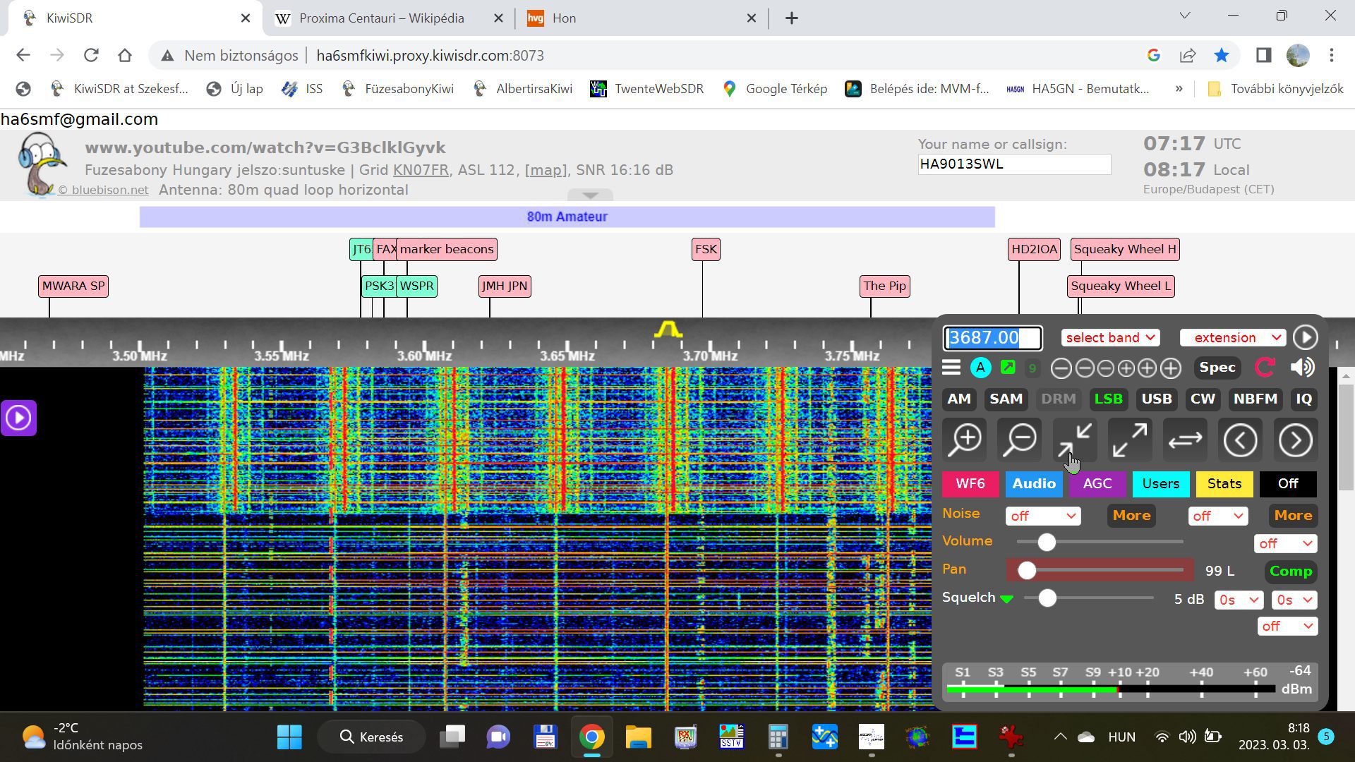 Itt Miskolcon is hasonló, bár a teljes sáv modulációja baloldalt látható jobban. Azzal indult, hogy 8 óra körül mintha lekapcsolták volna a sávot, minden adó eltűnt 80 méteren Valami HAARP kísérlet lenne? A hozzászólás módosítva: Márc 3, 2023