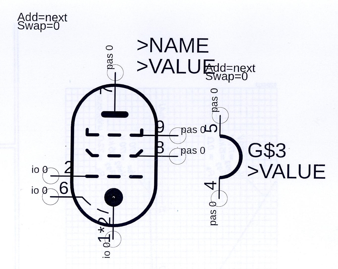 A rajzod jó, nem a vonalakkal volt / van a probléma, hanem a mi micsodával. Minden alkatrésznek van egy neve és egy értéke ha a kezedbe veszed. A BD123 tranzisztornak a neve: tranzisztor, az értéke: BD123 Ha egy rajzba szerepel akkor ez röviditve jelenik meg T / Q...stb plusz egy szám. T1..T2..Q1..Q2...stb az értéke BD123 Ha ilyen alkatrészt rajzolsz, akkor a name mező értéke alapértelmezetten G$1 Ehhez társul egy "prefix" ahol meghatározod az alkatrészre vonatkozó röviditett nevet T, Q, IC, L...stb Ha olyan alkatrészt rajzolsz ami több kapuból áll pl egy műveleti erősítő, invertert..stb ott társítanod kell egy kapunevet a kapuk megkülönböztetéséhez. A,B,C...stb, plusz prefix adja az alkatrész nevét. Rajzban alkatrésznek soha nem adunk olyan nevet, hogy BD123 mert az nem az alkatrész neve hanem az értéke. ezt sokan összekeverik Rajzban a >NAME és >VALUE csak a név/érték megjelenítését és annak helyét határozza meg Ha nem adod hozzá az alkatrészhez a >NAME és >VALUE-t akkor is lesz neve és értéka az alkatrésznek, csak nem jelenik meg a rajzodon. |