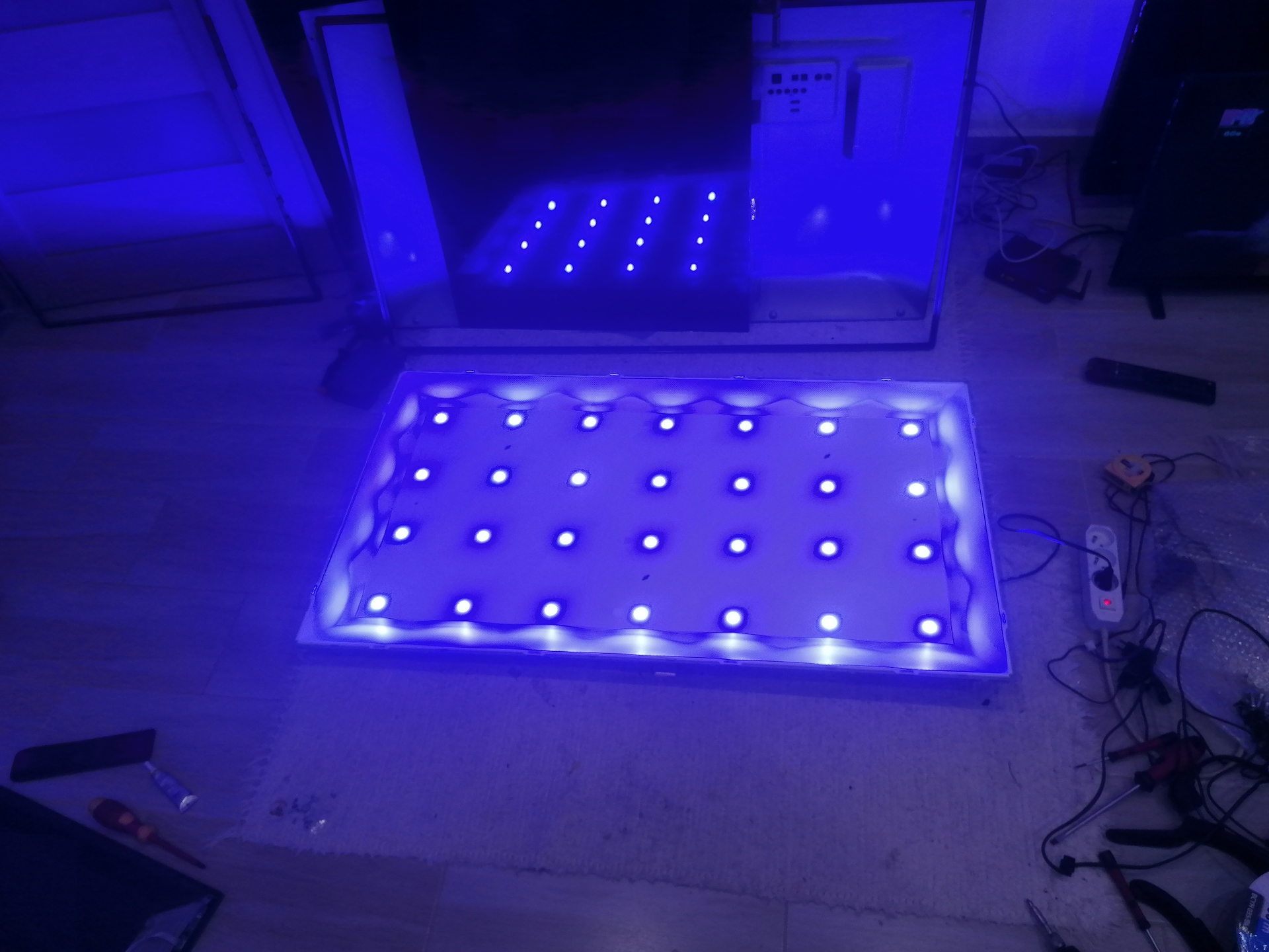 Nálam most volt egy LG 43"-os TV. Hátulját lebontva lehetett látni, hogy a ledek kéken világítottak. Mint jdani által feltett képen. Kínából rendeltem hozzá ledsort (6000 Ft) és kicseréltem. Nem vagyok tv szerelő, de videók alapján és odafigyeléssel megoldható. Tappancsok sem kellettek hozzá. Egyetértek szs-el, Kicserélném a led sorokat a helyedben.