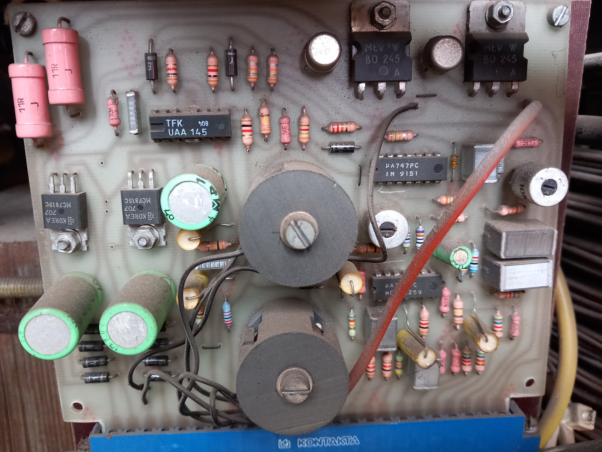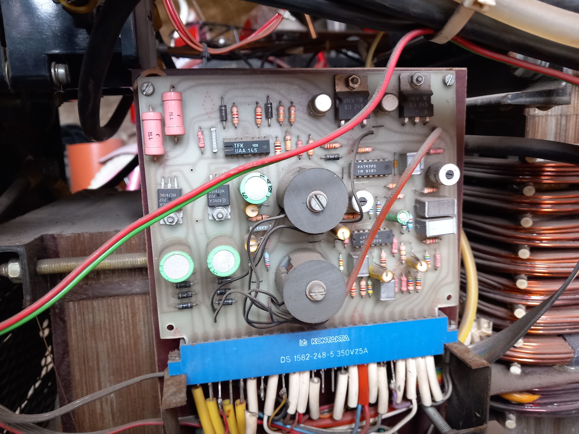 Igen, a tirisztoros gyújtó egység a becsatoló tekercsel. Én a TW 400-as adapterekből bontottam ugyanilyeneket. A vezérlő-gyújtó egység ( UAA 145-ösökkel) pedig külön egy transzformátorra illesztett panel volt... de még van egy komplett összeszerelt vezérlő részegységem is meg sok-sok panel.