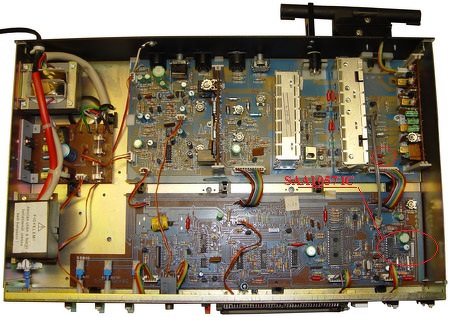 Csatoltam egy képet, sajnos nem találtam jobb minőségűt (ha kell készítek én a sajátomról jobbat), erre próbáltam rájelölni dolgokat. A képen jelzett SAA1057 IC szokott jellemzően elpusztulni. Ezt a tényt ellenőrizni is tudod, mégpedig oly módon, hogy fogod a multimétert, (egyenfesz. mérés) egyik mérőcsúcsot a GND-re csípteted a másikat, pedig az IC feletti szalagkábel jobbról az első vezetékére (piros, vagy barna szál) teszed. A rádiót hangolva a feszültségnek kb.: 0V-tól 10-12V-ig kell változnia. Ha nem így lenne, akkor az IC halott.