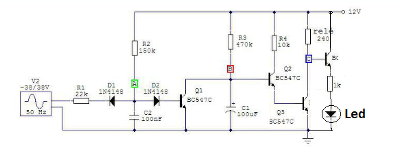Hello! Nézd át a kapcsolást, mert valamit elkövettél ellene. A tranzisztor pont elválasztja a Led terhelőáramát a relétől. (Azért, hogy a relé ne hogy húzva maradjon a Led áramától, ha túl érzékeny lenne a relé.)