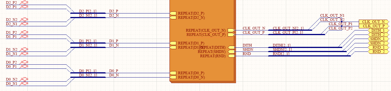 Az LVDS-re vonatkozo Differential Pair Direktiva csak abban a rajzban van megadva amelyre a symbol hivatkozik. Remelem orokli ezt a tulajdonsagot, es a repeat utan is diff vezetekkent lesz rutolhato (?) Udv.