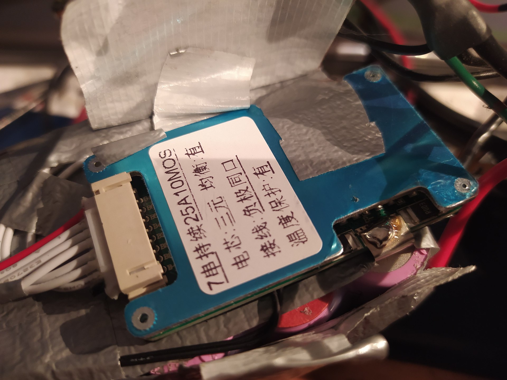 A képen nem látszik, de műanyag ragasztópisztollyal összekenték az egészet, még a BMS csatit is. Ezt nem szívesen bontom meg, mert ha véletlen kigyullad, akkor ne én legyek érte a felelős.