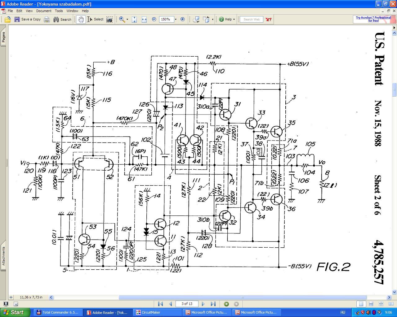 Igyekeztem minél többet megőrizni a minden bizonnyal az Elektor magazinban publikált kapcsolásból. Ez már lényegesen kisebb torzítású és nagyobb fázistartalékú az előző változatnál.