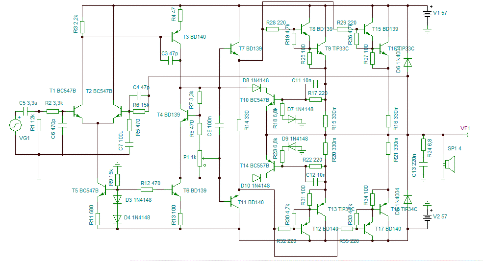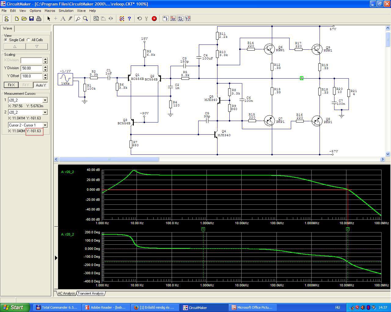 Igyekeztem minél többet megőrizni a minden bizonnyal az Elektor magazinban publikált kapcsolásból. Ez már lényegesen kisebb torzítású és nagyobb fázistartalékú az előző változatnál.
