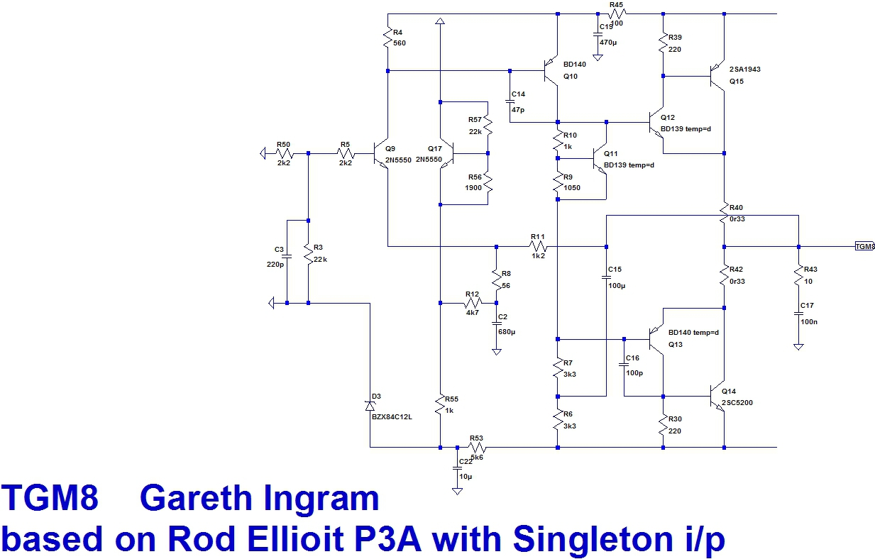 Aztán shany linkelt valami MJR7, MJR8, valamint MJR9 előrecsatolt erősítőről rajzokat. Akkor abban megtetszett, hogy nem problémázik a munkapont stabilizálással, hanem egyszerűen veszi az erre a célra készített laterális feteket, és azokkal épít előrecsatolt erősítőt. Bár a bemeneti rész eléggé puritán, és szerintem meg lehetne jobban is csinálni, nem eldobandó ötlet.