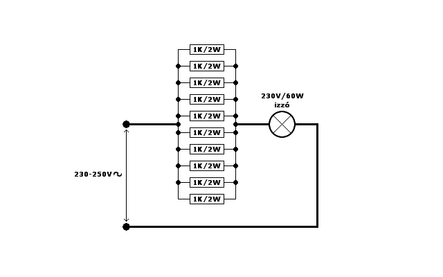 Ami eszembe jutott, gyerek koromban egyik ismerős javasolta, 230-as izzóval sorba egy kisfeszültségű izzó. Az általános megrökönyödés után gondolkodva, ha a két izzó névleges árama egyezik, akkor mindkettő szépen elvilágít, és a nagyobb csökkentett feszültséget kap. ( hátrány cserénél ugyan olyanra lehet csak cserélni, és a kisfeszültségű izzón is hálózati feszültség lesz.) 60W os izzóhoz talán a csökkentés mértékének megfelelő számú sorba kötött 3W-os 12-14V-os karácsonyfa izzó dukál.