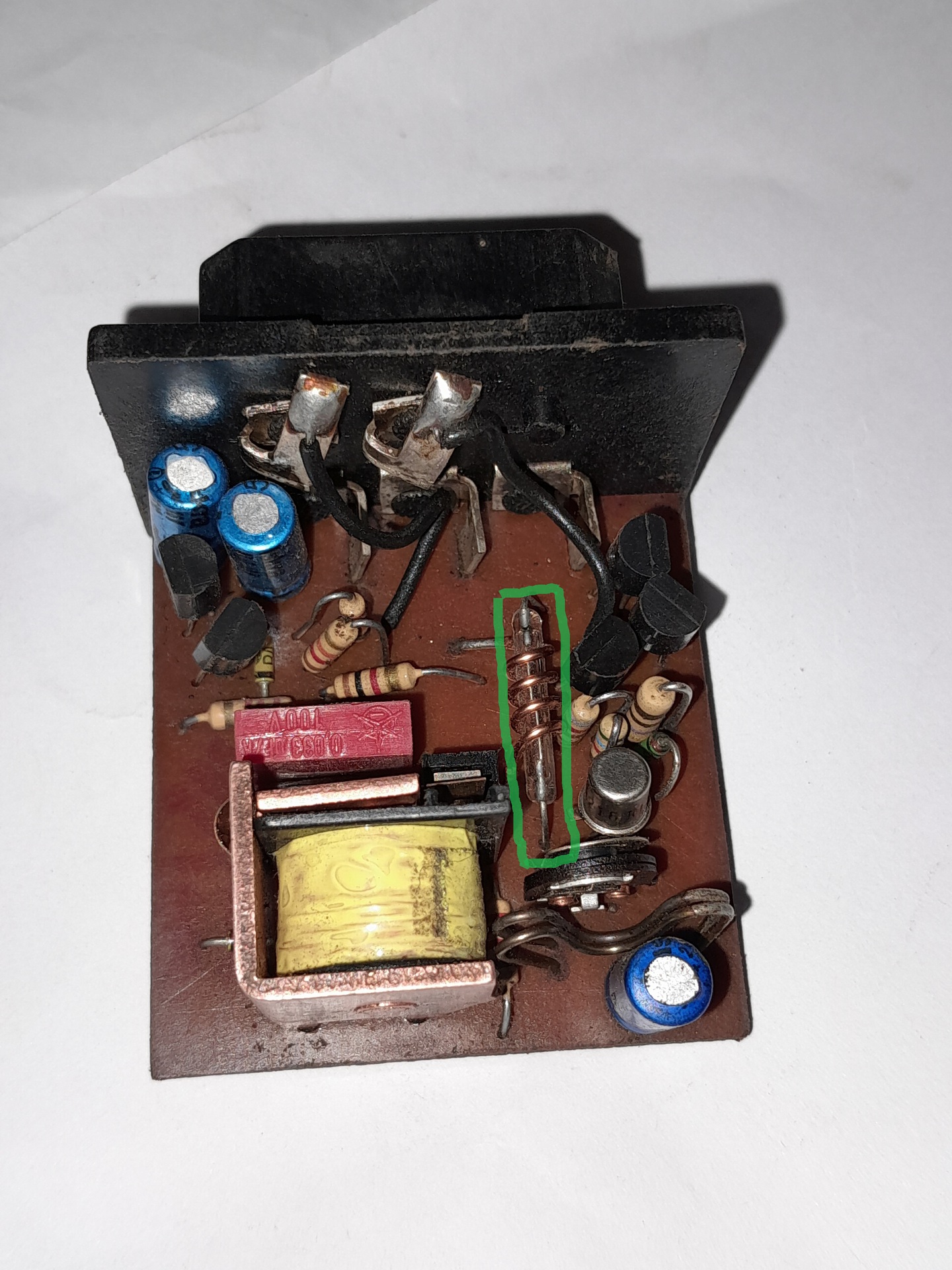 Alábbi képen levő pislogo automaton micsoda az a üveg körül tekercselve drottal mi a neve az egy inducios trafo vagy másként nevezik