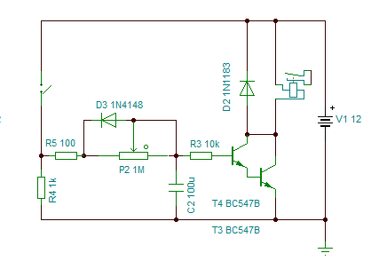 Itt is találsz egyet. Ha azonos idő a be-ki kapcsolás, akkor a tranyós rész nem kell, csak a C1-R3 közös pontja és a 10-es láb közé kell egy 220k poti. A relé helyett meg mehet az SSR.