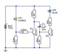 Kicsit módosítottam rajta, hogy alacsonyabb tápfeszültségről is működőképes legyen. Most 3,3V..5V tápfeszültségig működőképes. Az áramkör "lelke" egy Led-es gyertyában található Led. Ebben kék led meghajtása volt a kívánalom, de természetesen más színű Led-el is működőképes.