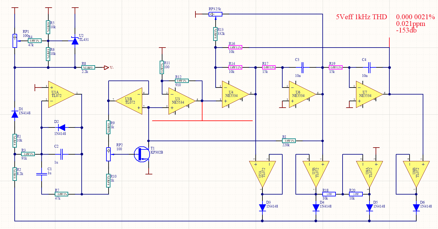 A TINA az mégis jó és képes pontosan számolni a torzításokat. Évekig azt írtam ide, hogy a TINA ebből a szempontból megbízhatatlan. Ezért összeraktam benne egy torzításmérő makrót és azzal voltam kénytelen mérni.