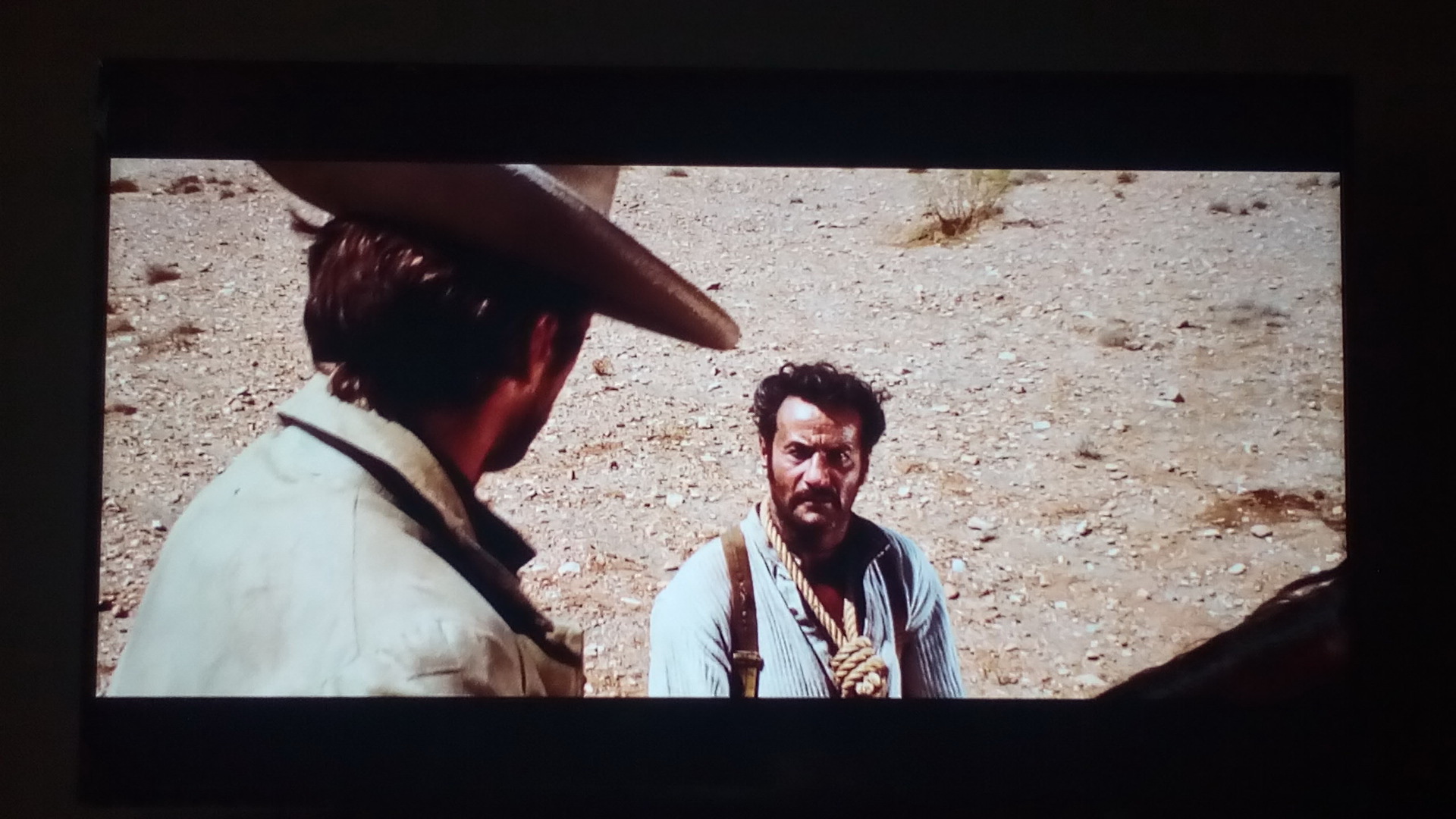 Nézzétek meg a különbséget.Mozi + oldalt összenyomva torz a kép magyarán pálcika emerkéket láthatunk.Na ezért volt jó a SAT beltérin a LetterBox funkció.Valahogy korrigálta azzal, hogy alul- felül összenyomta a képet. Másik kép ugyan arról a jelenetről 4k-ban a youtube-ről. Azért van különbség. A képek miőségéért elnézést félig okos telefon. Nem szereti a mozgóképet.