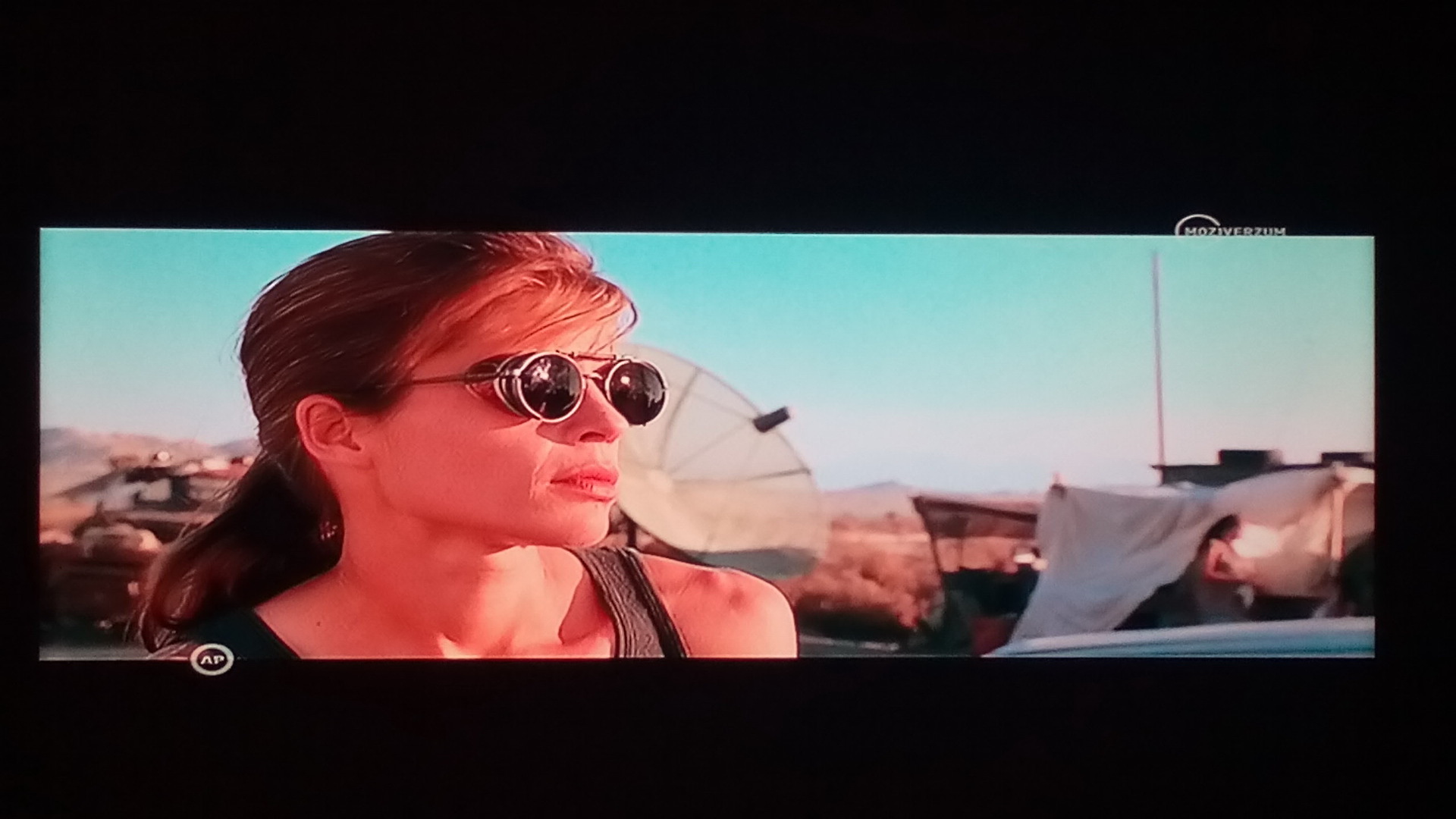 Nézzétek meg a különbséget.Mozi + oldalt összenyomva torz a kép magyarán pálcika emerkéket láthatunk.Na ezért volt jó a SAT beltérin a LetterBox funkció.Valahogy korrigálta azzal, hogy alul- felül összenyomta a képet. Másik kép ugyan arról a jelenetről 4k-ban a youtube-ről. Azért van különbség. A képek miőségéért elnézést félig okos telefon. Nem szereti a mozgóképet.