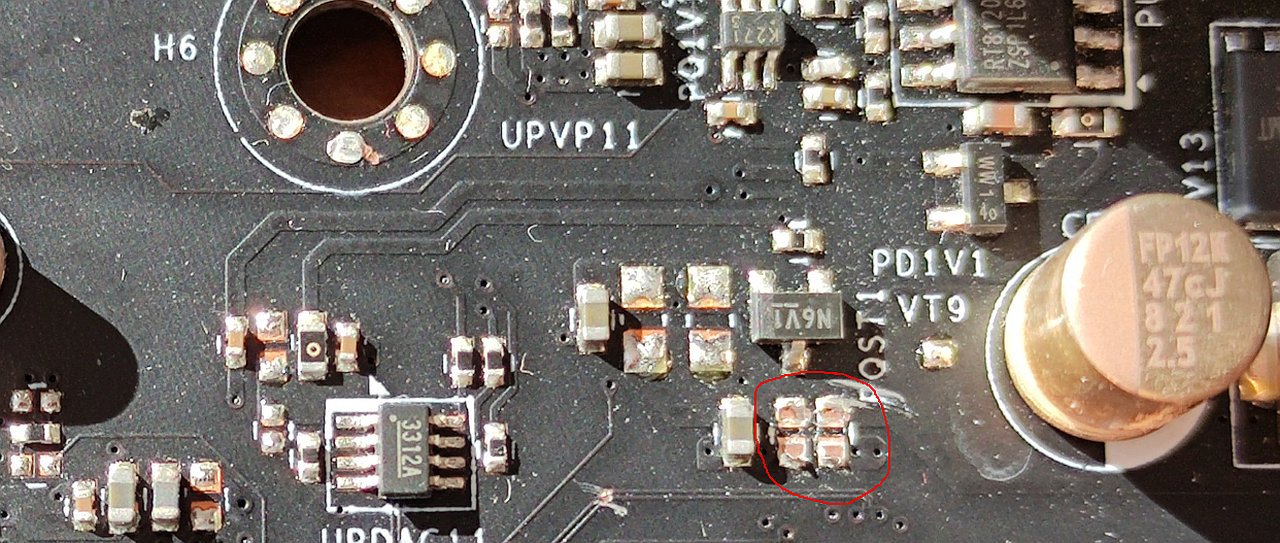 1V0 chipset táp kondik, 10µF 6V3. Okozhat ilyet akár, de lesz ott más is. De mindjárt kiderül.