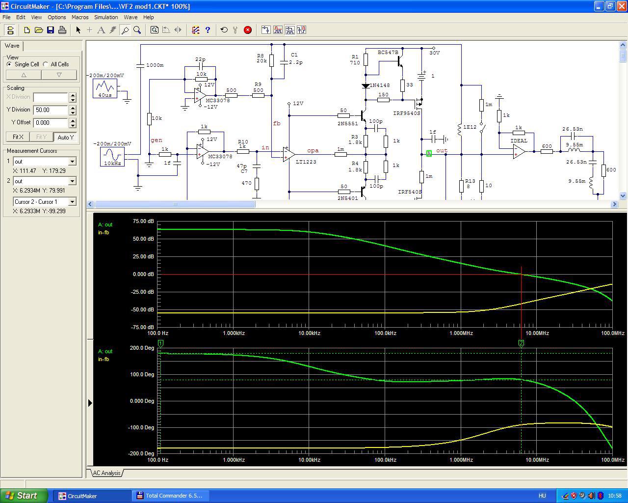 Megnéztem. Te nem szoktál hülyeségeket írni. Rémlik, hogy ezt is valami szkópban láttad még régebben és említetted is, meg is mutattad, ki is próbáltam. Nekem nem működött jól, mert túl sokat akartam. De így - "rendesen" méretezve - teljesen jó. 57 fok fázis nyereség 10MHz-en és ez teljesen ingyen van.... mások ennyiért ölni tudnának.