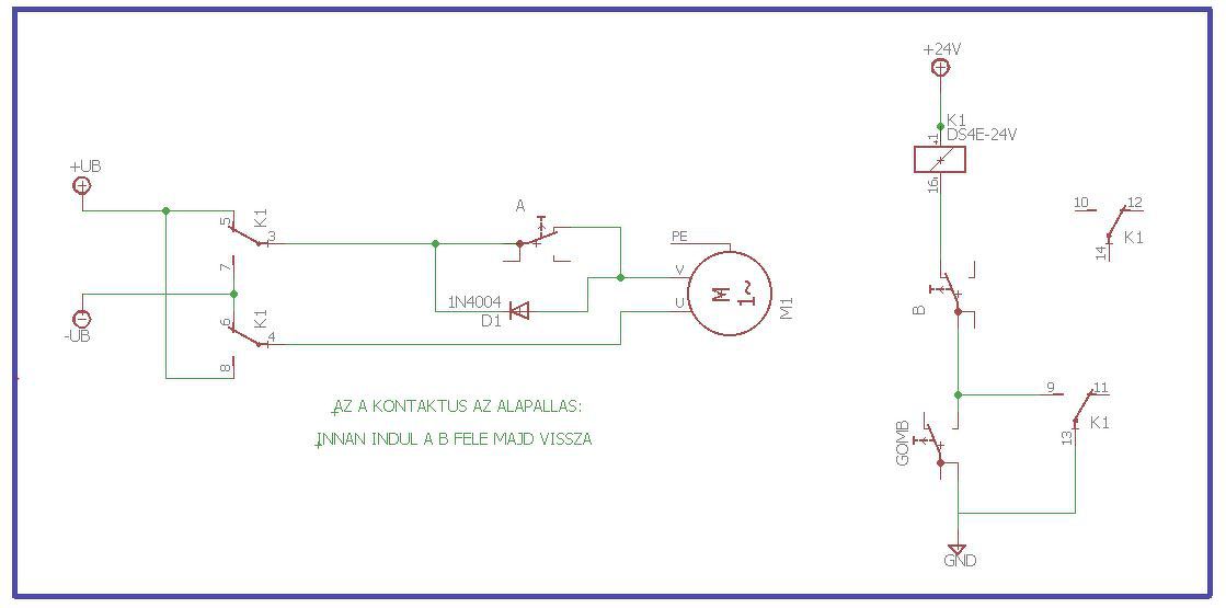 Hello! Proba erről beszél. De nem írtad a kapcsolód típusát és a motor áramfelvételét. Mert nem biztos hogy a kapcsoló és a végállás azt elbírja. A képen nincs a kapcsolónak középállása (mert a Tina-ban nincs ilyen) kétáramkörös háromállású On-off-On típusú kell.