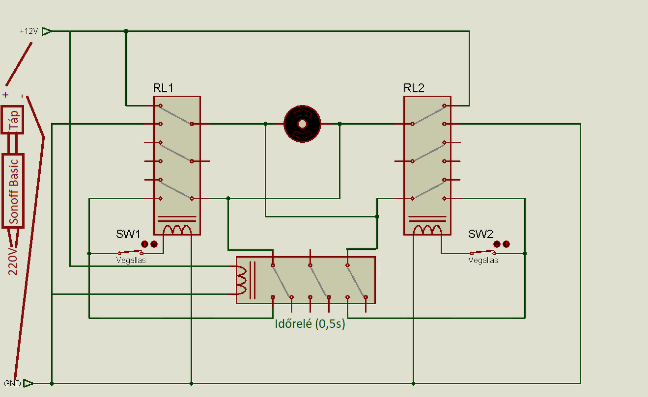 Bár most hogy nézegetem, nem értem a két jelfogó hogyan tud egyszerre húzni. Ha együtt húznak, egymás tekercseit kölcsönösen rövidre zárják.