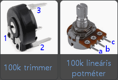 Hogy az trimmer, forgó, toló, vagy többfordulatos kivitelű, az már mindegy. Elvileg mindegyikből van mind a három fajta. És mindegyiket be lehet kötni mindegyik helyére. Hogy milyen kell a kapcsolásba, azt az adott feladat határozza meg.