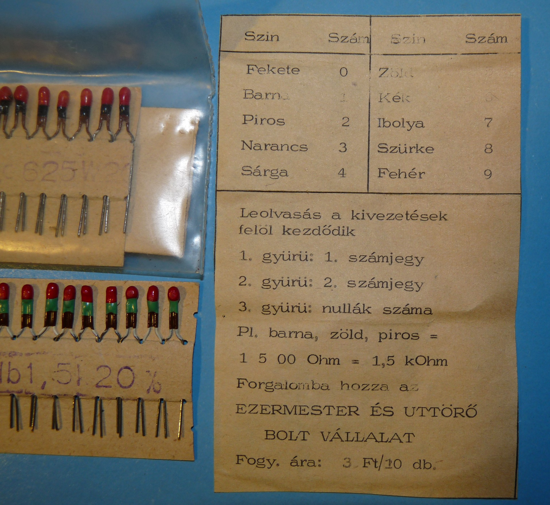 Milyen ellenállások ezek a régmúltból előkerült "új" alkatrészek. Nem az értéke érdekel, az egyértelmű a színkód alapján, hanem az anyaga, gyártója. (Mivel az Ezermester bolt hálózata (is) forgalmazta, gondolom KGST országbeli lehet.) A 20% tűrésből is bőven kilógnak, pl. a 10 kΩ-osok 6,9 -18 kΩ tartományban vannak jelenleg.