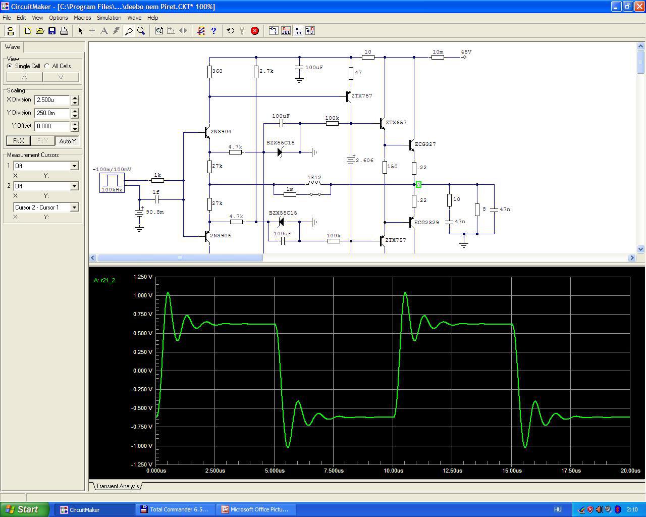 Félretettem az előítéleteimet és leszimuláltam a végfokodat. Ezt a fotót kitetted a fórumra, akár ebből is visszarajzolom a kapcsolást, tehát nem sértem a szerzői jogaidat. A Piret végfok eredeti leírása megvan nekem, de nem akarom beszkennelni, mert annyira azért nem érdekel ez az egész.