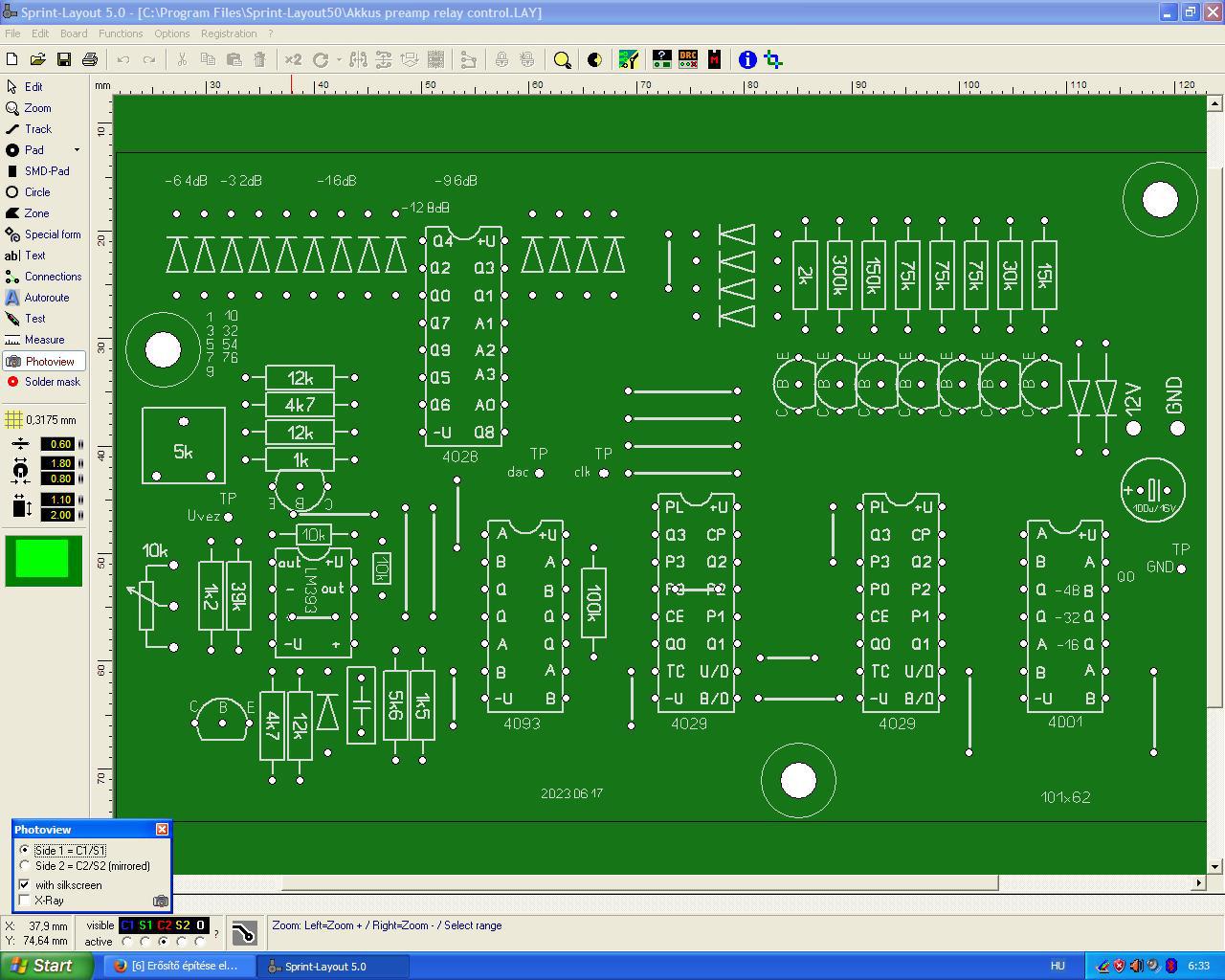 Úgy érzem így jó lesz az előre-hátra számláló. Kipróbálom. A reléket optocsatolók fogják meghajtani.