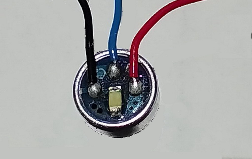 Kezembe került a képen látható valami, 6mm átmérő, 2.5mm vastag. Olyasmi mint egy mikrofon kapszula de nem az. A piros és fekete vezeték a tápfesz. (Li-Ion akkuval próbáltam ki) A kék vezetékkel szemben egy led van. Ha a led felől belefújok akkor a led világít és a kék vezetéken a tápfesz jelenik meg, ami egész jól terhelhető (4.7Ω-os ellenállással próbáltam).