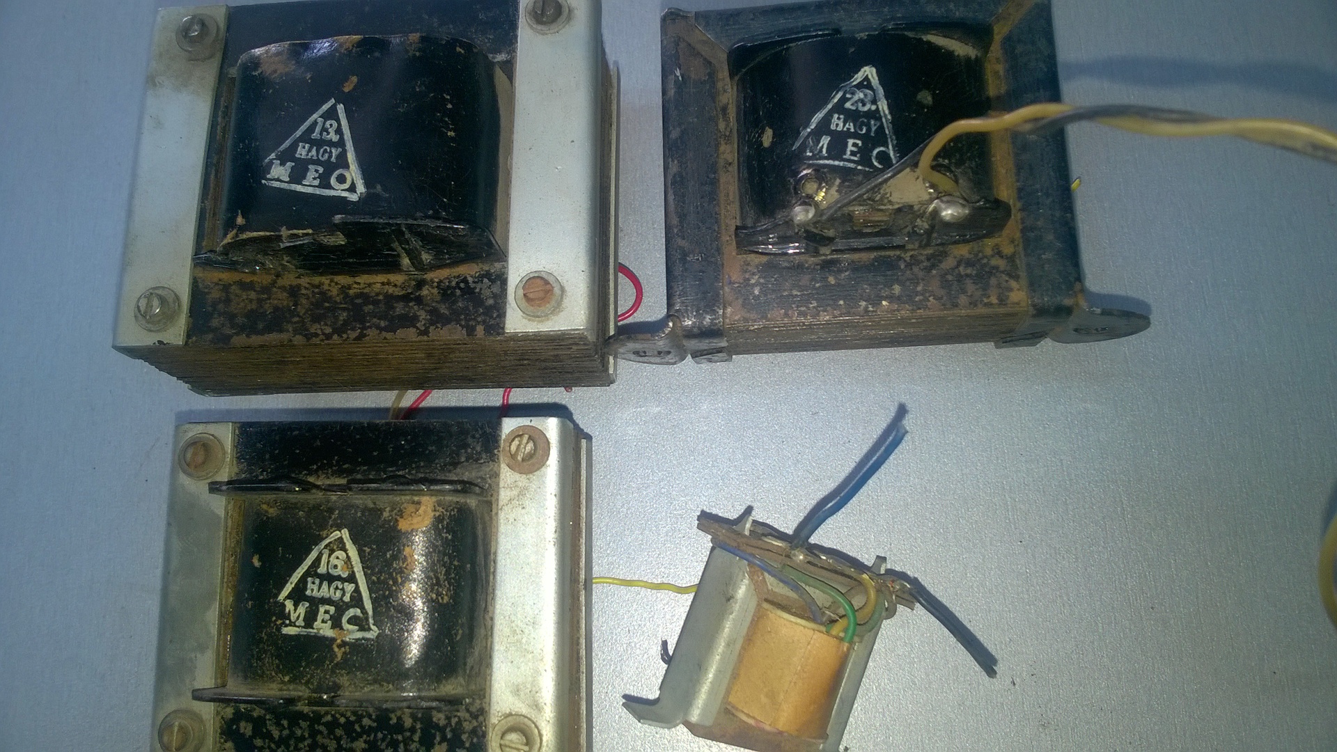 Sziasztok A Méh telepen találtam,ezt a négy trafót 1 folytó 1képkimenő 1hang kimenő a kicsit azt nemtudom .A kérdésem hogy melyik fekete fehér tv be lehetett,vane összefüggés a látható Meo felirat és a tipusa között ,vagy csak a gyártásnál a bemérés pecsétje. köszönöm