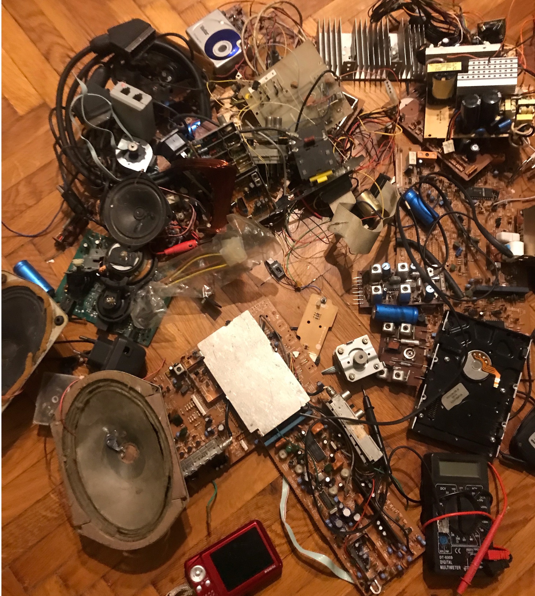 Továbbadnám a képen szereplő kupacot. Van benne többek között: -2db P3-as (nem Tualatin) alaplap, amikor elraktam még működtek. -Bontott videómagnó, nyomtató, monitor paneljei (utóbbin USB hub) -léptetőmotor nyomtatóból -400W-os ATX táp, nekiálltam átalakítani, de folyton letiltott. -Pártíz W-os több kimenő feszültségű trafó magnóból - nagyon keveset futott 80GB-os HDD, anno megégett a panelja, azt levettem róla -bontatlan AM3-as gyári hűtő -kisebb, nagyobb hűtőbordák -csöves tv-ből hangszórók, pár helyen szakadt a membrán - CD/DVD-ből származó piros lézer -250GB-os laptop HDD SATA-s stb Személyesen átvehető Budapesten a Corvin pláza közelében, egyben. Mérete és súlya miatt nagy hátizsákot javaslok. Cserébe asztali PC-be való procit elfogadok, nem kell, hogy működjön, dísznek szánom. (de enélkül is odaadom a pakkot)