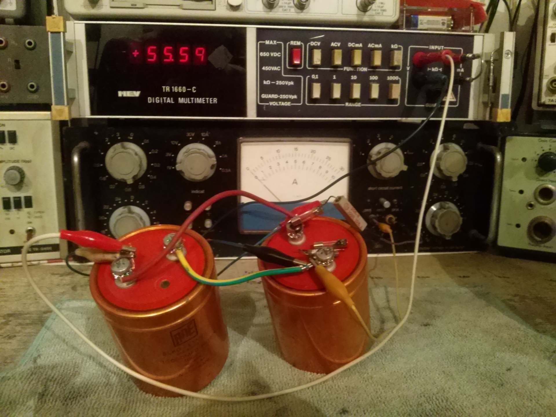 Megosztom, mert szerintem érdekes. Kerestem két szimpatikus kondit. ROE-t, mert az szép nagy duci. Két 10 ezer mikrósat, mert az úgy már húszezer. Kicsit formáltam őket, nehogy felrobbanjanak itt nekem a pofámba. Jól feltöltöttem őket, amit csak bírt a labortápom, annyira, tehát úgy majdnem 56 V-ra. Aztán kerestem két szimpatikus ellenállást és ezzel a lendülettel szét is kalapáltam őket, hogy lássam vajon mi lehet a belsejükben - valamint azt is, hogy a biztosíték bírja tovább az áramlökést, vagy az ellenállások. Az egyik 0.47R, a másik 0.22R. A képen látható 0.1R csak illusztráció, hogy így nézett ki a 0.22R is amíg megvolt a kabátja... tehát olcsó mezei izé, de legalább rá van hegesztve a huzal a sapkájára. Közben számolgattam is exhas, hogy ha mondjuk a párhuzamos kondik ESR-je 50 mOhm, a biztosíték ellenállása pedig legyen ugyanennyi, a 0.22R meg legyen 0.22R, akkor ez az első időpillanatban kb. 173 A áram, ami majd úgy 5x 0.64 ms elteltével csökken nullára. A kodikban tárolt enegia 31 mJ, ami a kisütés röpke ideje alatt kW nagyságrendű teljesítmény, mind az ellenálláson, mind a biztosítékon. Megmutatom szimulátorban is a hitetlenek kedvéért. Kiolvad ettől egy olvadó biztosíték? Egy 10 A-es biztosan... vágnám rá, de nem vágom rá, mert előre tudtam, hogy nem. Ezt is megmutatom. Sokadik kisütés után is sértetlen az olvadó biztosíték olvadókája, miközben a sapka leolvad róla. Sőt odaheged a csavarhoz. Ez a ponthegesztés egyik formája. Aztán még odáig is elmerészkedtem, hogy a biztosítékkal közvetlenül zártam rövidre a kondenzátor kivezetését. Volt ám szikraeső, tűzijáték, kupakolvadás, de sem a biztosíték nem olvadt ki sem a kondi nem robbant fel (mivel még itt vagyok). Nem vak az lú, csak bátor. Aztán kezdtem lejjeb adni. A 8 A-es még mindig nem olvad ki ennyitől. A 6.3 A-es harmadik nekifutásra, a 0.22R-rel végre. Az 5 A-es elsőre, a 0.47R-rel is. De még talán ez is szerencse dolga, hogy vagy kiolvad, vagy nem. A 4 A-es már biztonságosan nem visel el 30 mJ energiát. Így számoljon aki ilyen védelmet szeretne. Persze itt (szándékosan) nem volt tápegység ami további árammal fűthette volna biztosíték betétjét. De az időállandó 6.4 ms, ami tud két töltési periódus közé is esni, mert a zsíroskenyér is mindig pofára... mint tudjuk. Aztán egy 30%-ra kisütött puffert kell újra töltenie a Graetz- nek, meg trafónak... szóval igénybevétel. A tirisztorral soros védő ellenállás nélkül egy tápegységben simán elszáll a BT152 pl. ami pedig 300A nem ismétlődő csúcsáramot elvisel. Legalábbis nálam többször megtette (anno). Nem egyszerű ez a crowbar (sem).