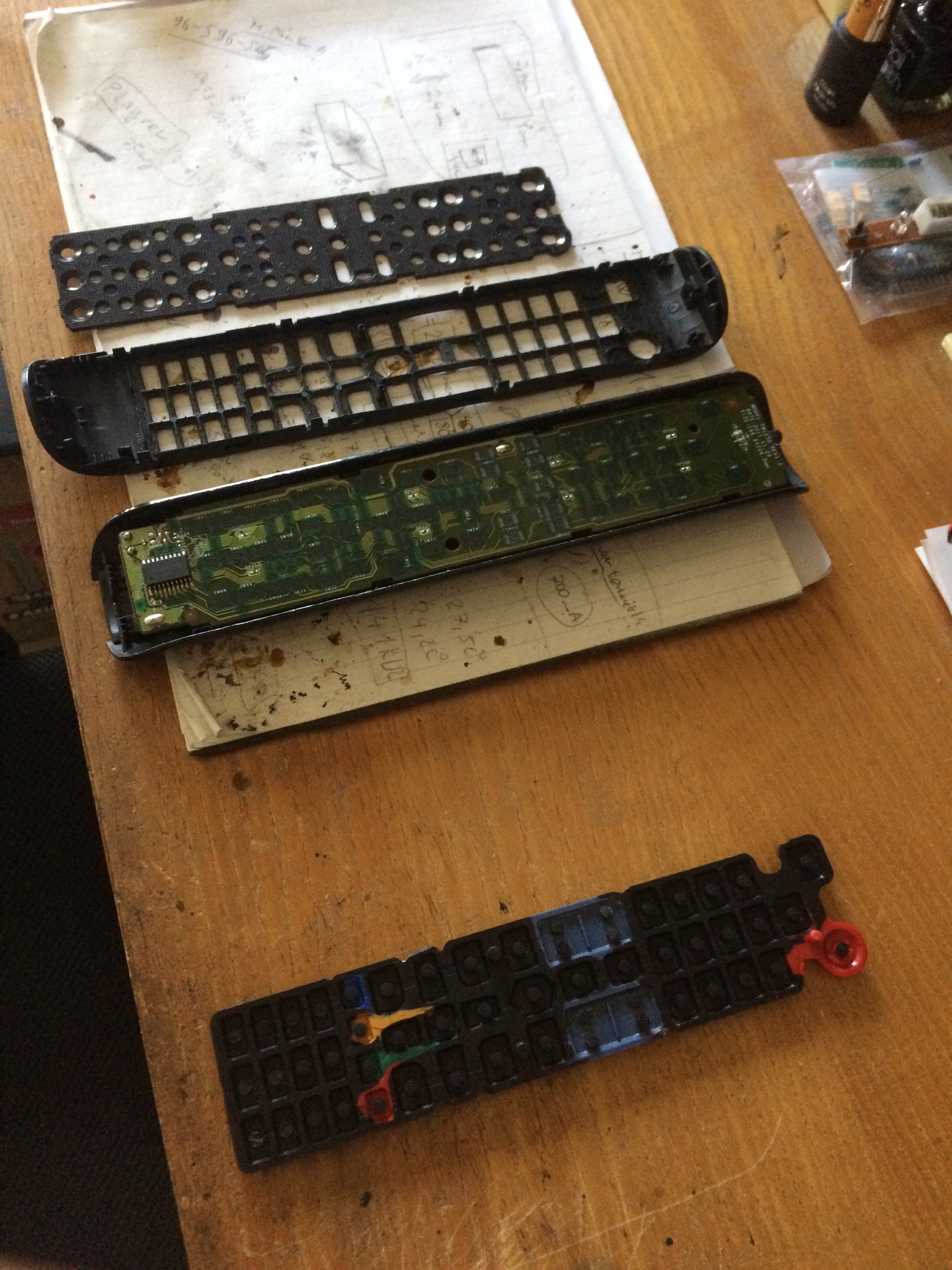 Az elfáradt gumipogácsák okozták a problémát, nem vettem semmit a nem használ gombokról levágtam ,és felragasztottam a hangerő és a program gombokra! Így már használható a távirányító, kicsit erősebben kell nyomni de működik.