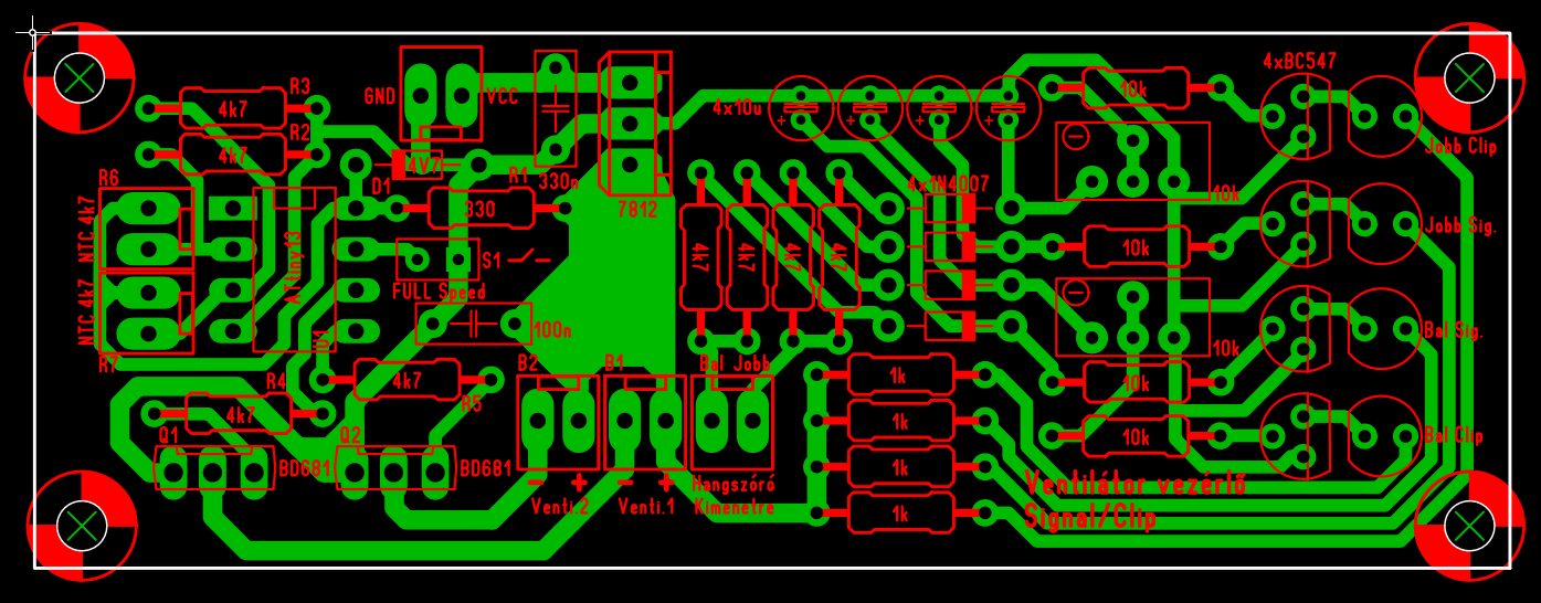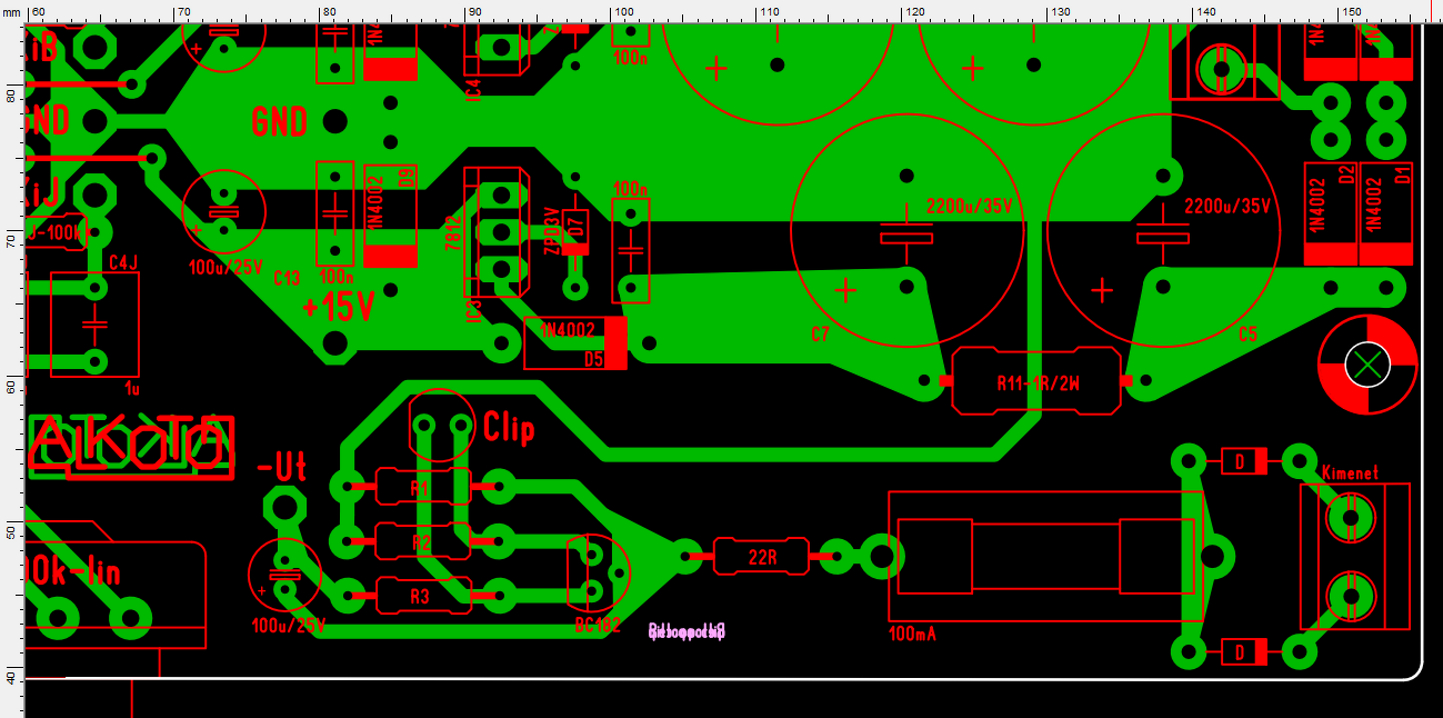 Szia! A csatlakozóknál utalsz az asszimmetriára? Vagy arra, hogy a kapcs rajzhoz képest van fordított oldalon a ki- és bemenet? Mégis az 1 rétegűre kéne ebben az esetben törekedni? Az útvonalakat még átdolgozom, hogy kevesebb legyen a "fölösleges" hurok.