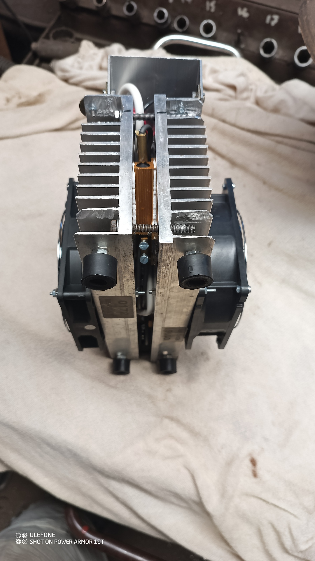 Elkészült a műterhelés 2.0 verziója, próbáltam minden tanácsot megfogadni. Hőálló szilikon kábeleket kapott, csavaros kötéssel lett megoldva az ellenállásokra csatlakozás. Két oldalról hűti már hűtőborda, két ventilátorral. Dc120W-tal fűtve egy ellenállást 67 fokra melegszik fel. Kapott még az alja 4 gumilábat, nekem sokkal jobban tetszik, mint az első verzió.